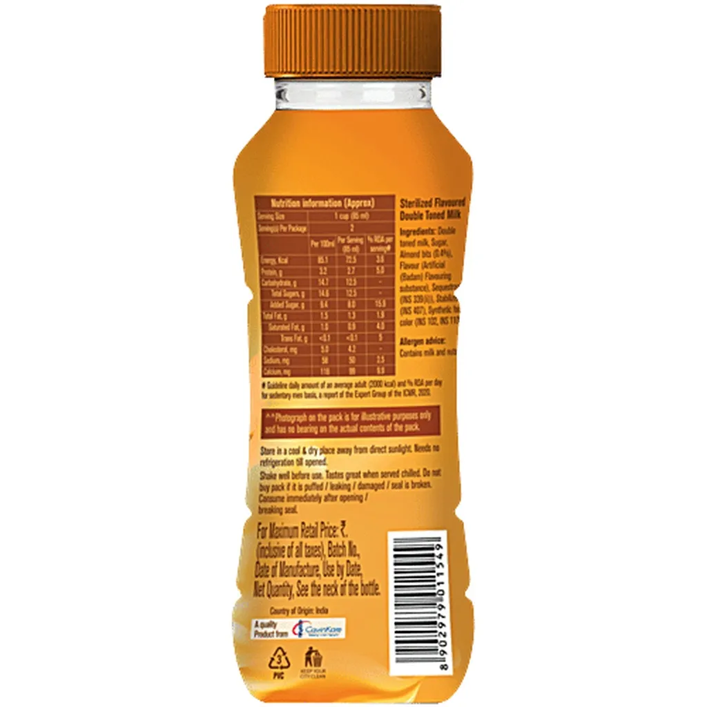 Cavin's Badam Flavoured Milk blends creamy dairy with almond essence for a rich, energizing drink perfect for on-the-go refreshment or school tiffins.